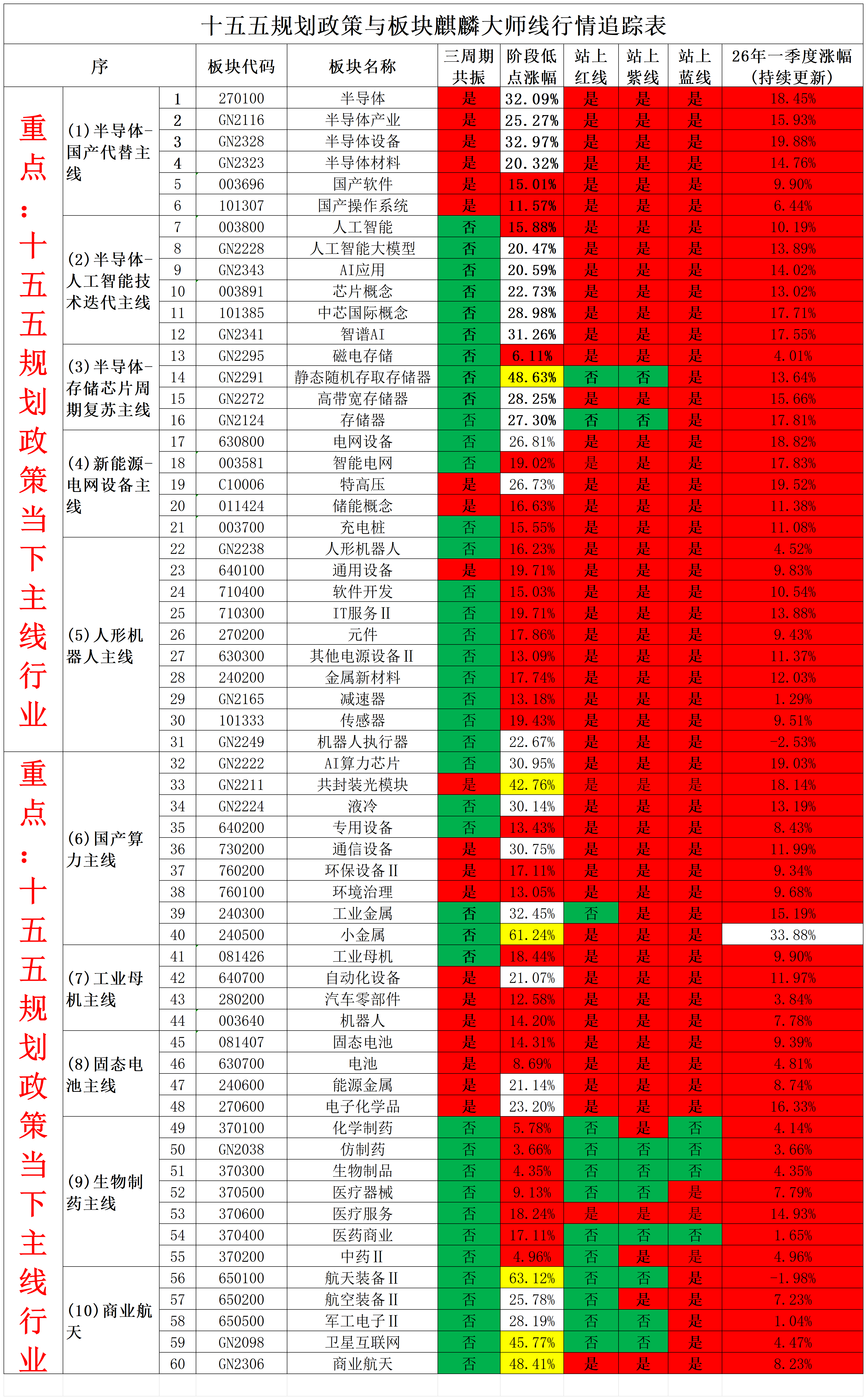 2026年2月12日十五五规划政策与板块麒麟大师线行情追踪表