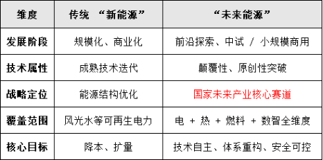 未来能源的提出标志着能源战略从“新能源替代化石”,转向“未来能源 + 新型电力系统 + 绿色燃料” 三位一体的全体系重塑,核心是从“化石主导”转向“清洁多元、智能协同”,最终实现碳中和。