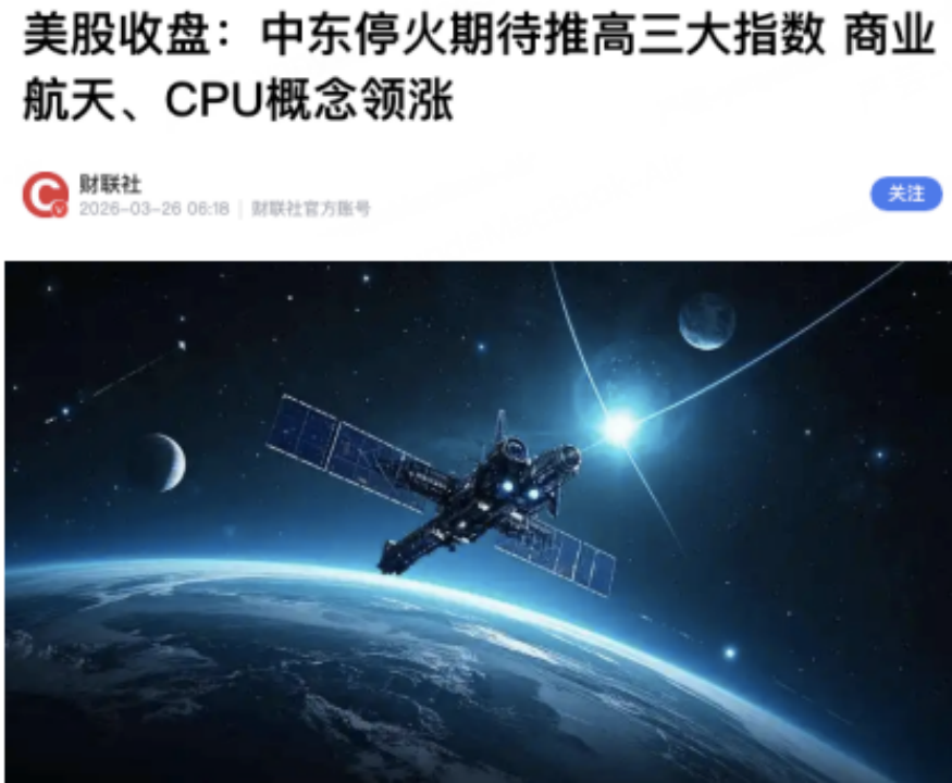 TOP1:中东停火期待推动美股收涨 商业航天、CPU概念领涨